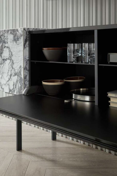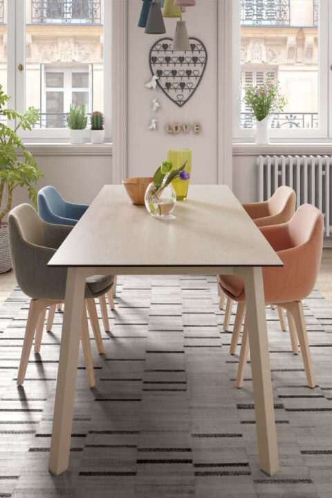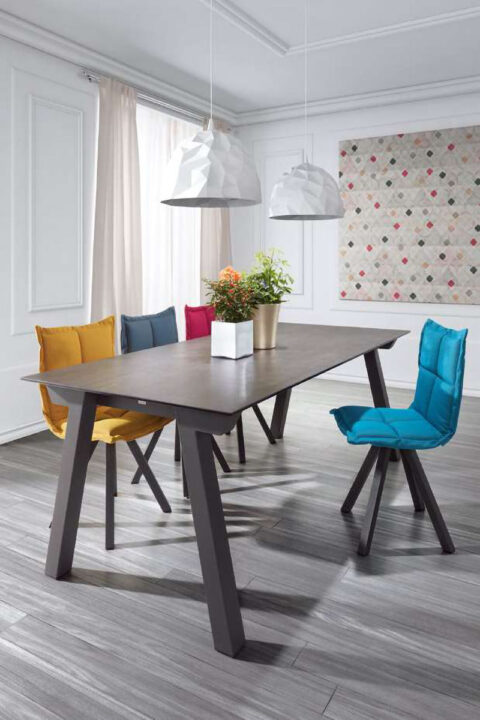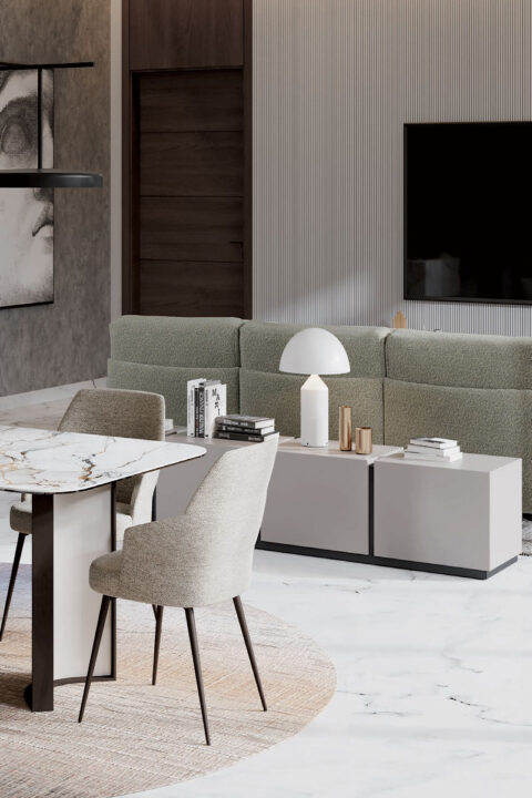 Cada pieza de Dressy es un ejercicio de sofisticación. La marca ha sabido elevar el uso de materiales industriales como el metal y la cerámica a una categoría artística, creando colecciones de mesas, sillas y aparadores que destacan por sus líneas esbeltas, sus acabados sedosos y una presencia que domina el espacio sin saturarlo.
