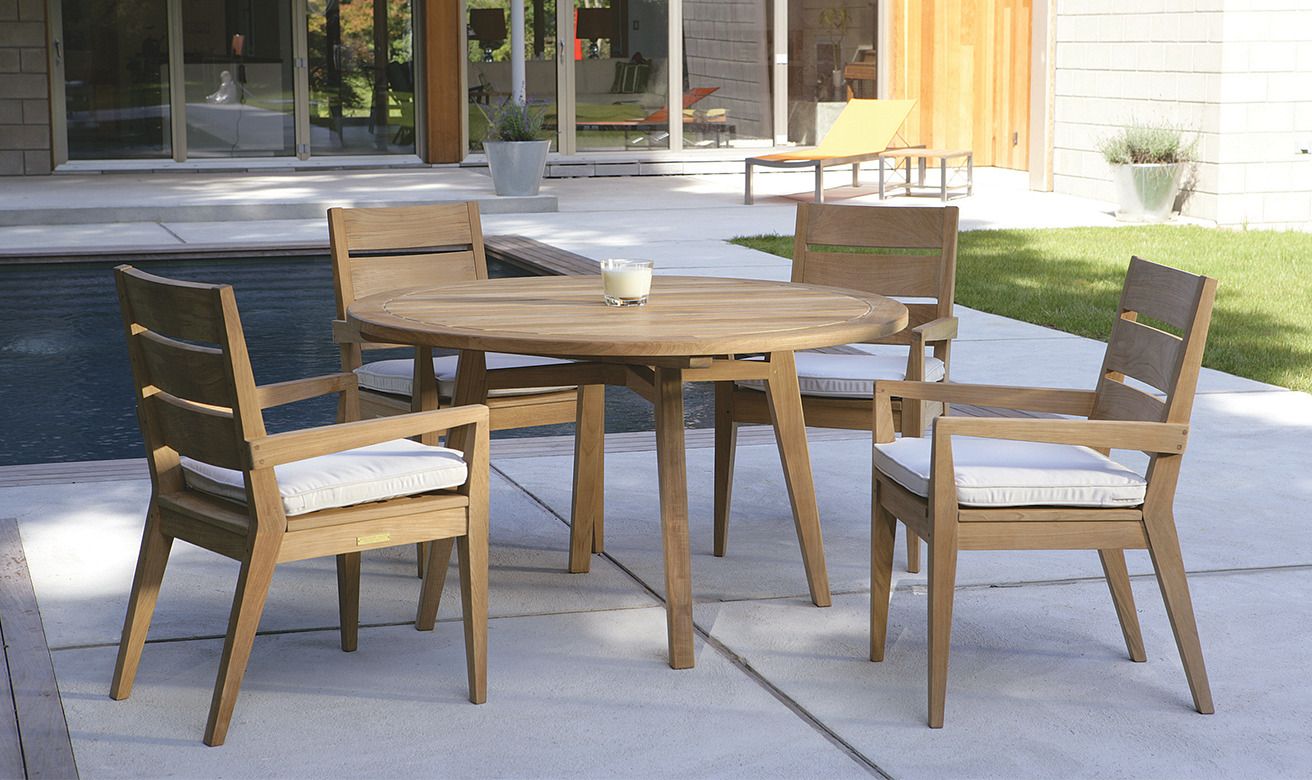 Diseñada por Fred Spector, la colección Algarve refleja el diseño danés moderno con líneas limpias y proporciones armoniosas. Fabricada en teca de grado A, es ideal para espacios de salón o comedor al aire libre.