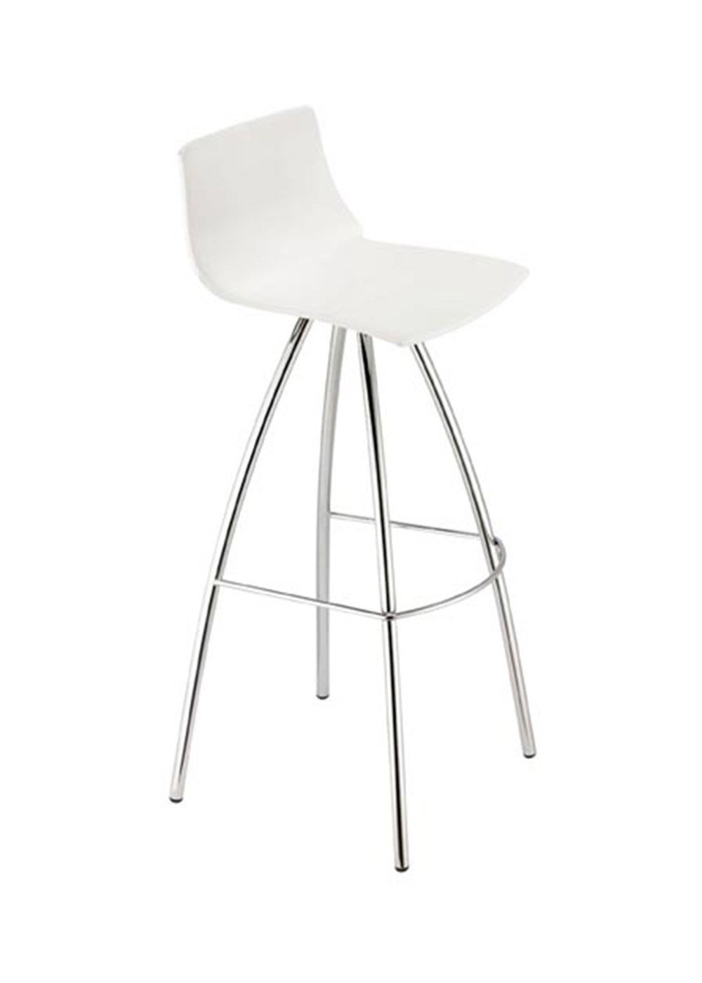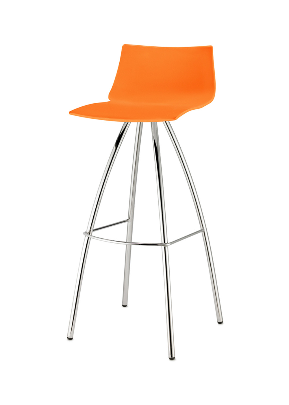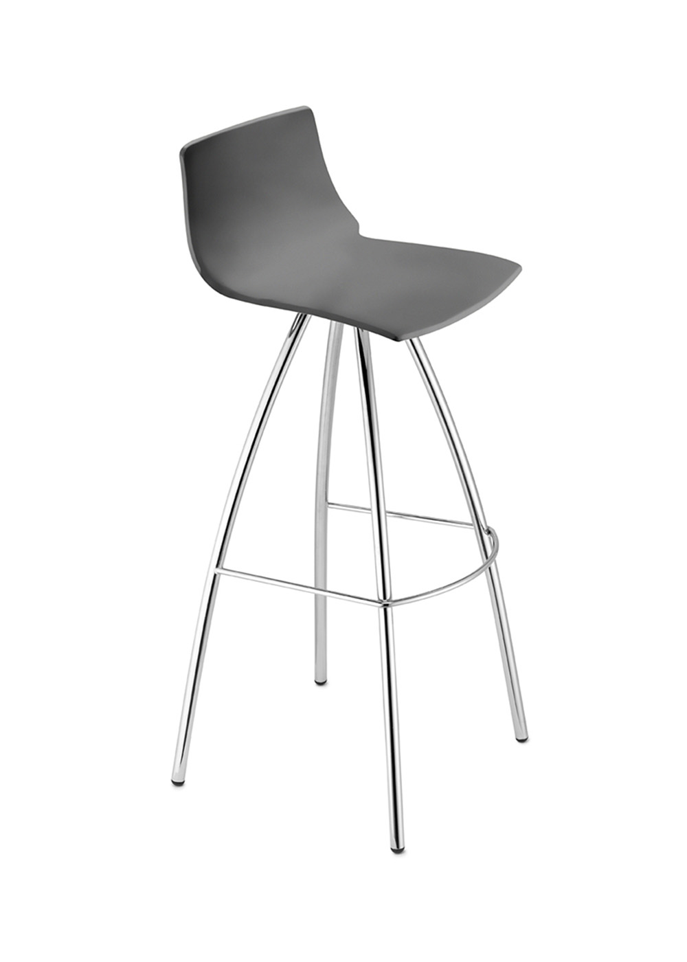 Banco de interior con estructura en acero cromado y asiento en tecnopolímero. Diseño moderno, resistente y f cil de integrar en cualquier ambiente.