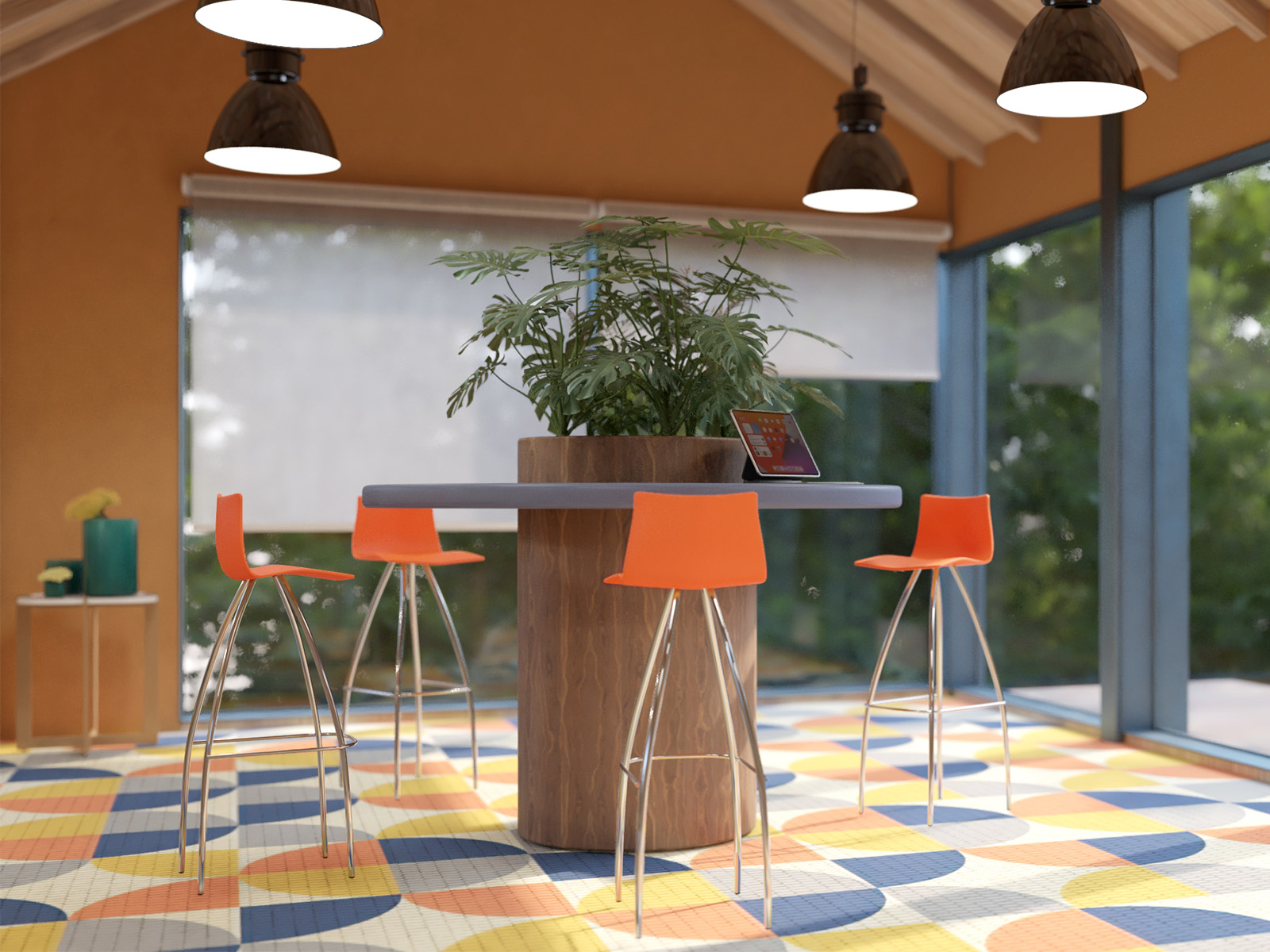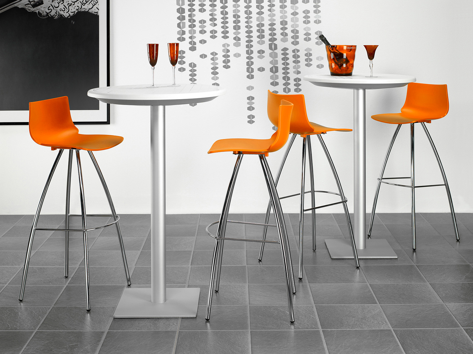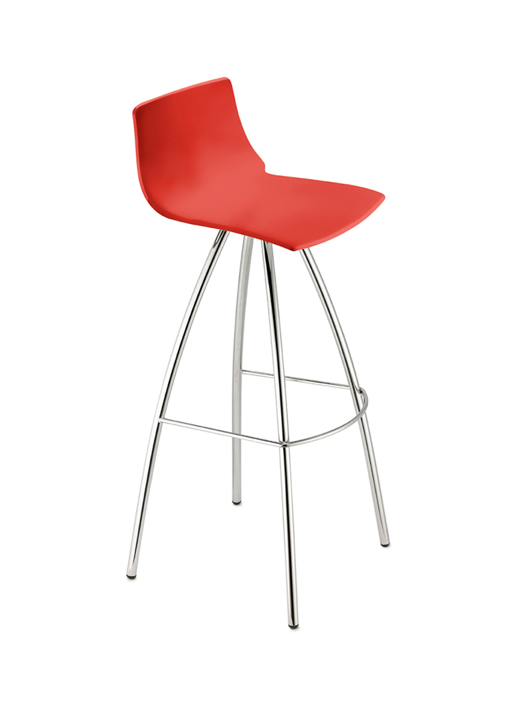 Banco de interior con estructura en acero cromado y asiento en tecnopolímero. Diseño moderno, resistente y f cil de integrar en cualquier ambiente.