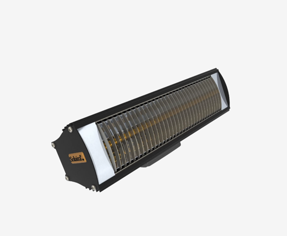 Luminaria calefactora de aluminio extruido con recubrimiento de poliéster resistente a rayos UV. Clasificación IP55 para uso exterior o interior. Incluye cable de 15′ con enchufe estándar NEMA 6-15.