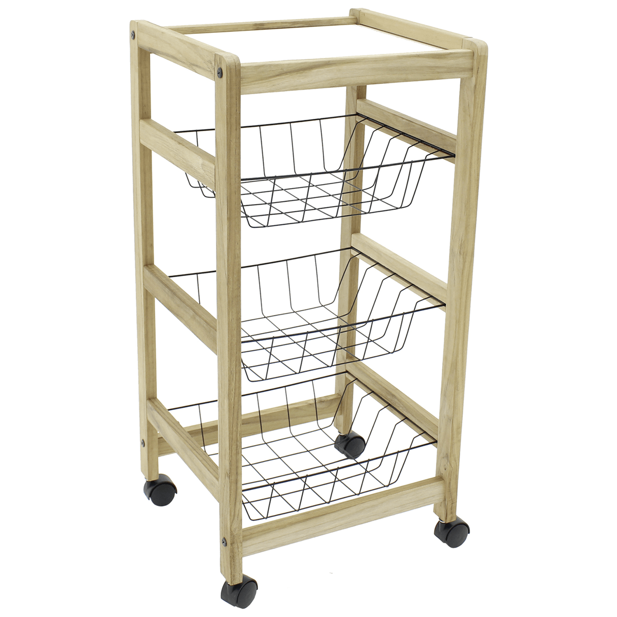 Frutera Tramontina de armar de madera teca con estante y 3 canastas.