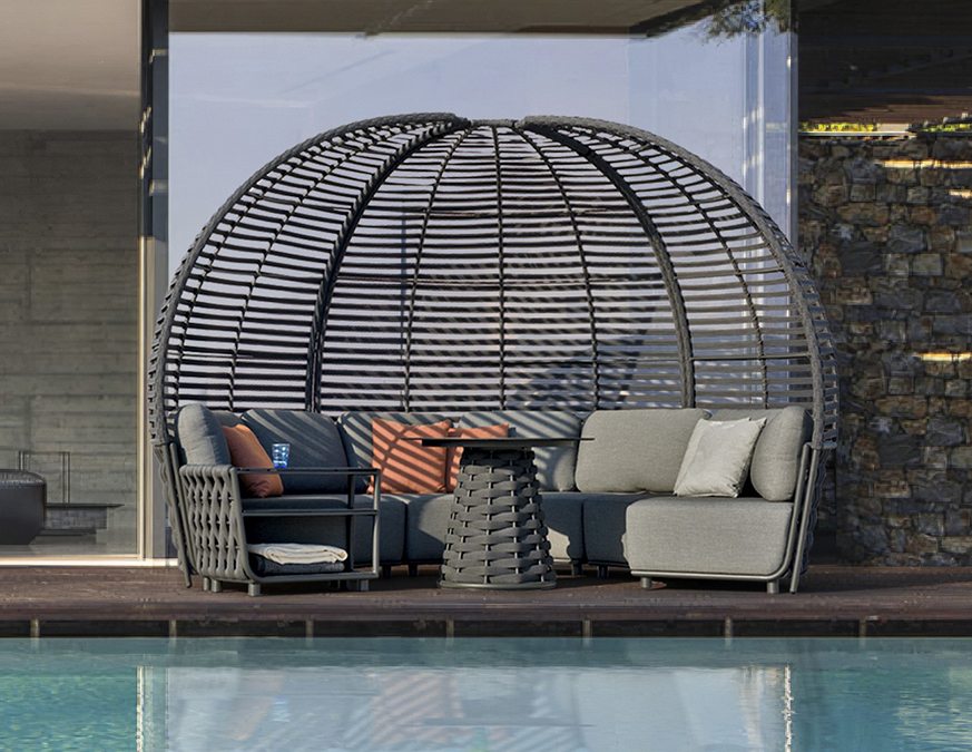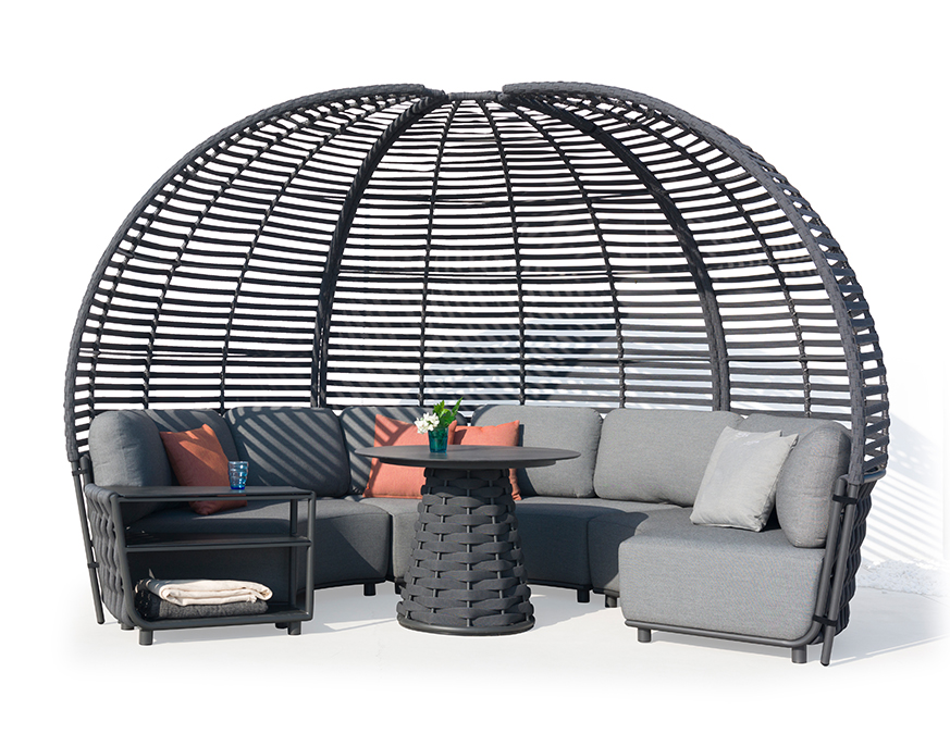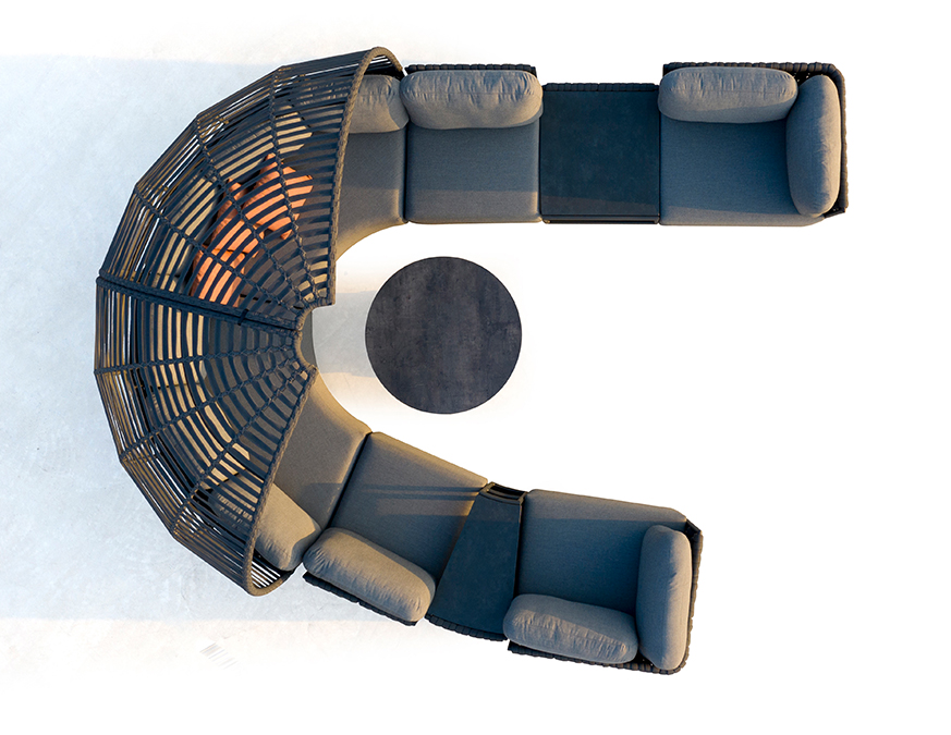 La Colección Hug ha sido diseñada para ofrecer una experiencia envolvente de confort y resistencia en exteriores. Su marco de aluminio soldado de calidad contractual proporciona estabilidad estructural y larga vida útil, ideal tanto para proyectos residenciales como para aplicaciones de hospitalidad de alto nivel.