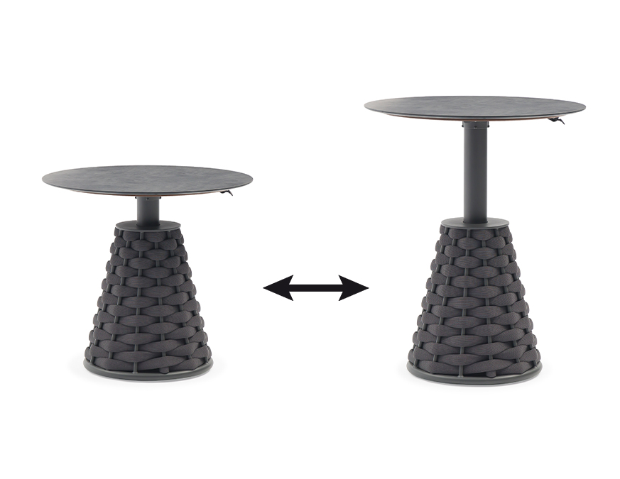 El acabado incorpora recubrimiento en polvo de la marca Tiger®, reconocido por su excelente desempeño frente a la corrosión, abrasión y exposición solar. El diseño integra Maxrope para exteriores tratado contra rayos UV, un material técnico que mantiene su tensión, color y forma aun bajo condiciones climáticas exigentes, aportando textura y carácter contemporáneo.