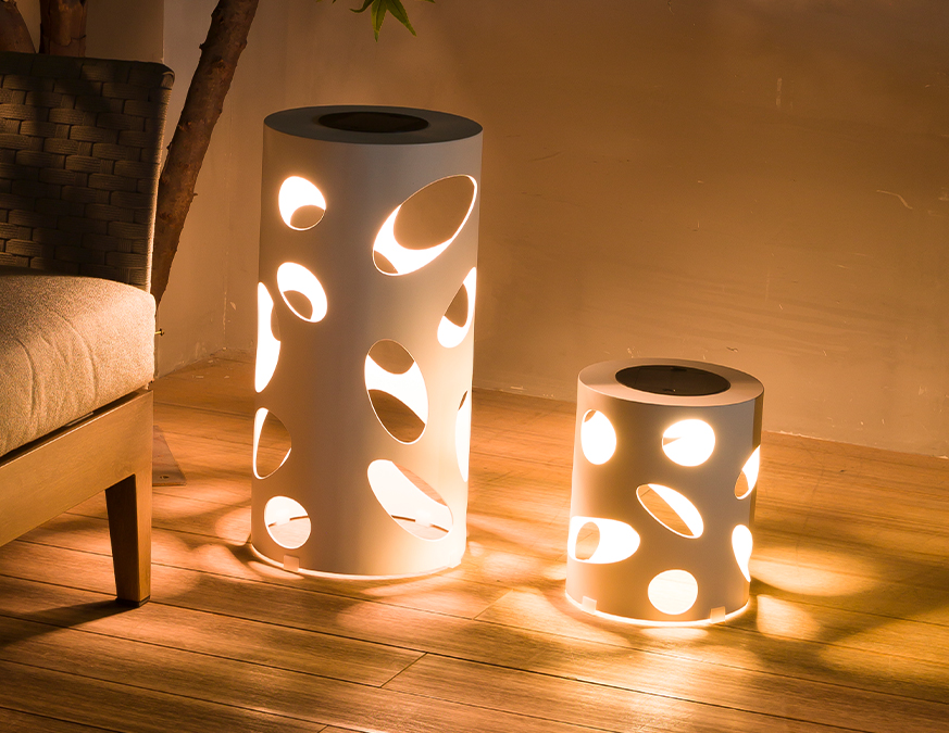 Además, cada pieza es solar y recargable, ofreciendo independencia energética, eficiencia y facilidad de uso sin necesidad de cableado. Esto permite colocarlas con total libertad en terrazas, jardines, rooftops o áreas lounge, aportando iluminación ambiental y diseño contemporáneo.
