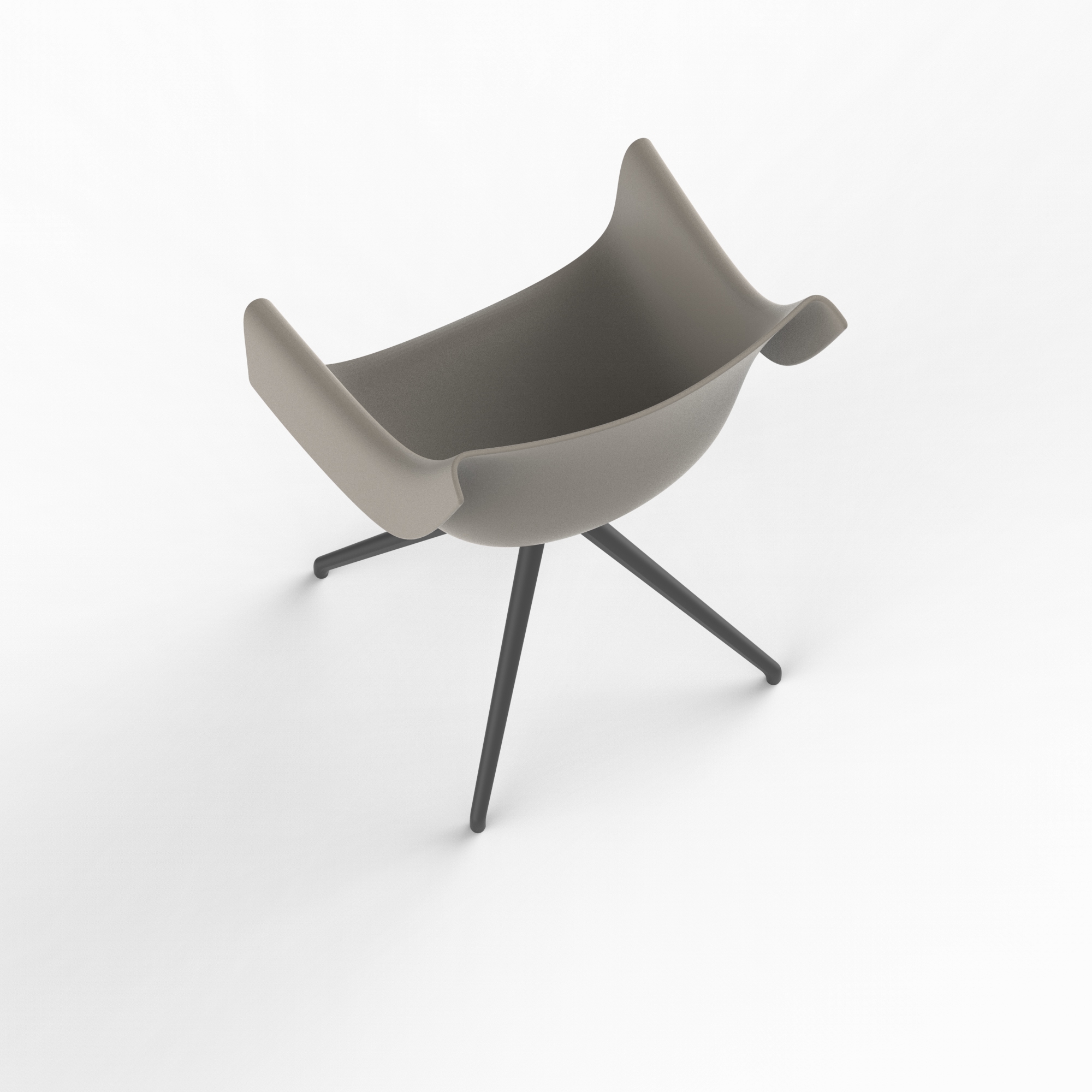 Sillón giratorio Manta, diseñado con un sistema de carcasas y bases intercambiables que permiten infinitas combinaciones. Versátil y apto para interior y exterior.