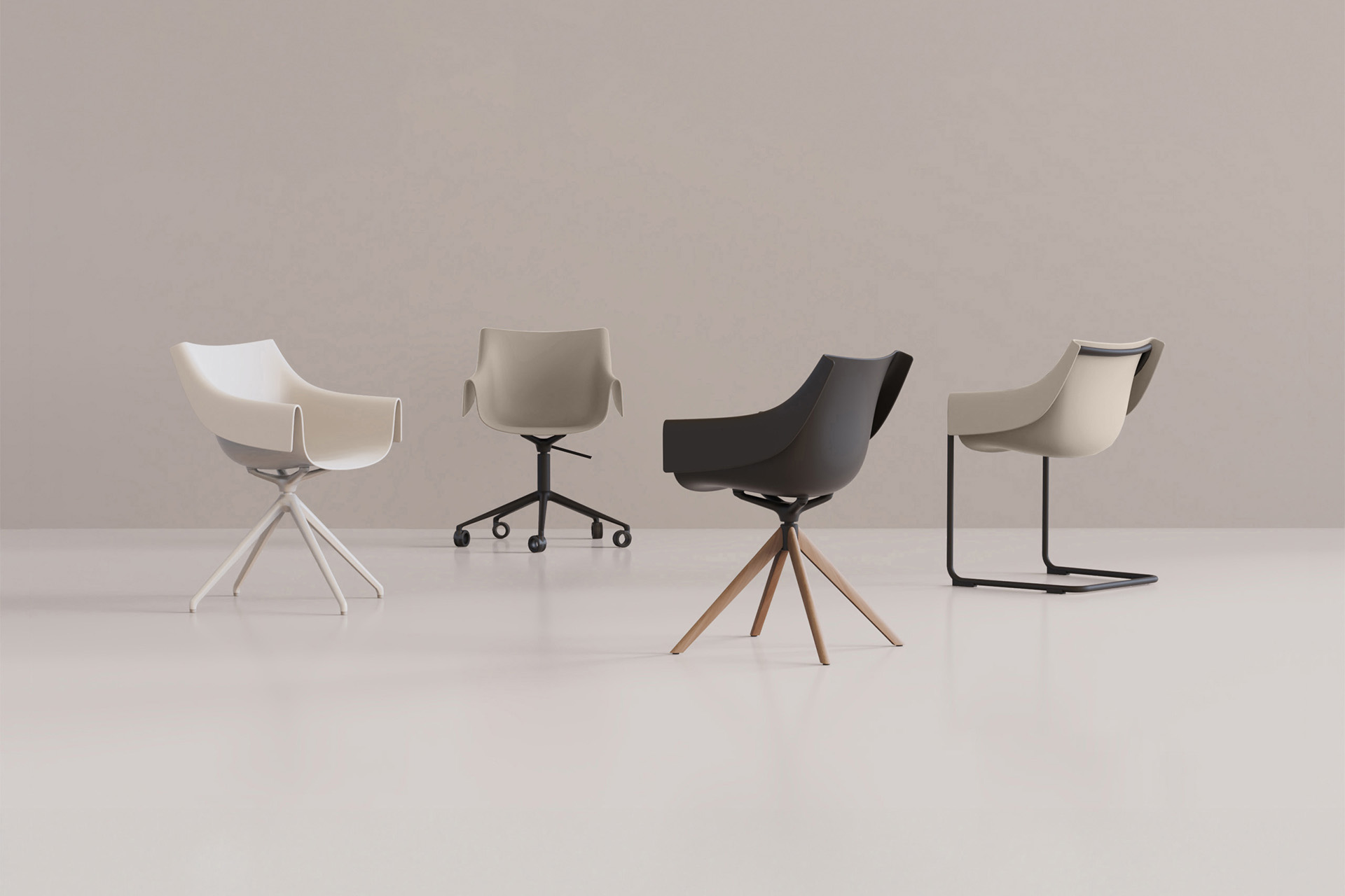 El Sillón Giratorio Manta forma parte de la nueva colección de asientos que destaca por su versatilidad y diseño modular. Su concepto innovador se basa en un sistema intercambiable de carcasas y bases, lo que permite crear múltiples combinaciones adaptadas a cada espacio y necesidad.