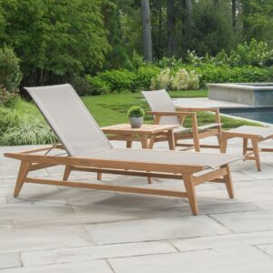Cada estructura está fabricada en teca de grado A, reconocida por su durabilidad natural y resistencia a la intemperie, reforzada con herrajes de acero inoxidable para máxima solidez y longevidad. Las superficies de asiento están hechas de Batyline™, un material técnico de alto rendimiento que ofrece comodidad inmediata, facilidad de mantenimiento y resistencia a los rayos UV. Además, son reemplazables, lo que extiende la vida útil del mueble y facilita su renovación.