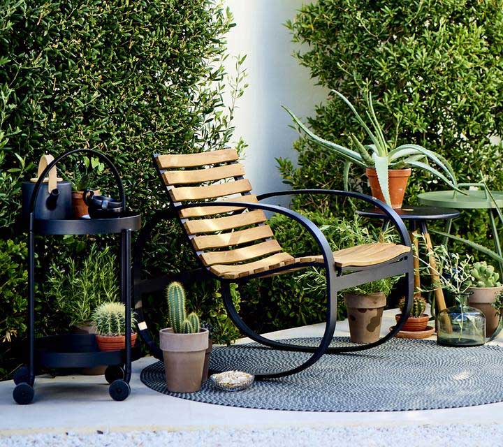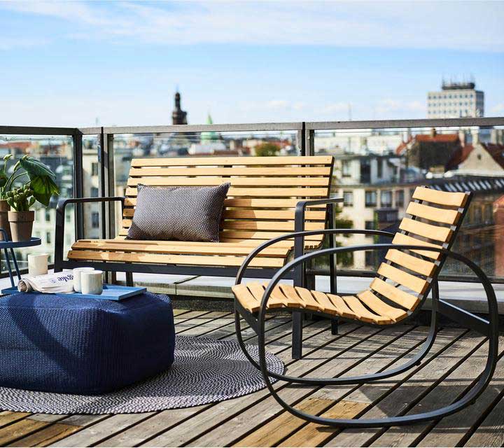 fabricada en teca certificada y aluminio con recubrimiento en polvo que garantizan una superficie resistente. La teca Cane-line está aprobada y cultivada de acuerdo con el sistema de certificación SVLK.