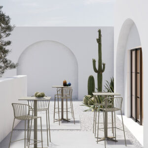 Disponibles con base de aluminio de 3 o 4 puntas y en distintas alturas (H.74, H.50 y H.110), las mesas Arket permiten elegir entre cubiertas circulares o cuadradas pintadas en colores sólidos, ofreciendo opciones de personalización para proyectos residenciales, comerciales o contract. Una colección que une diseño, practicidad y sofisticación.