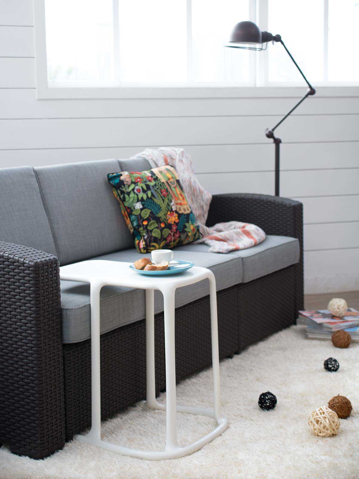 Su estructura permite deslizar las patas bajo el sofá, acercando la superficie a ti, ideal para colocar tu café, snacks, controles o laptop. Disponible en negro, marrón, gris y blanco, su mantenimiento es mínimo: solo necesita agua para limpiarse. Además, es apilable para facilitar el almacenaje y cuenta con 1 año de garantía.