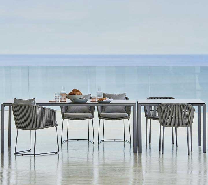La mesa puede combinarse con las sillas para exterior Cane Line y formar un bello comedor para el jardín.