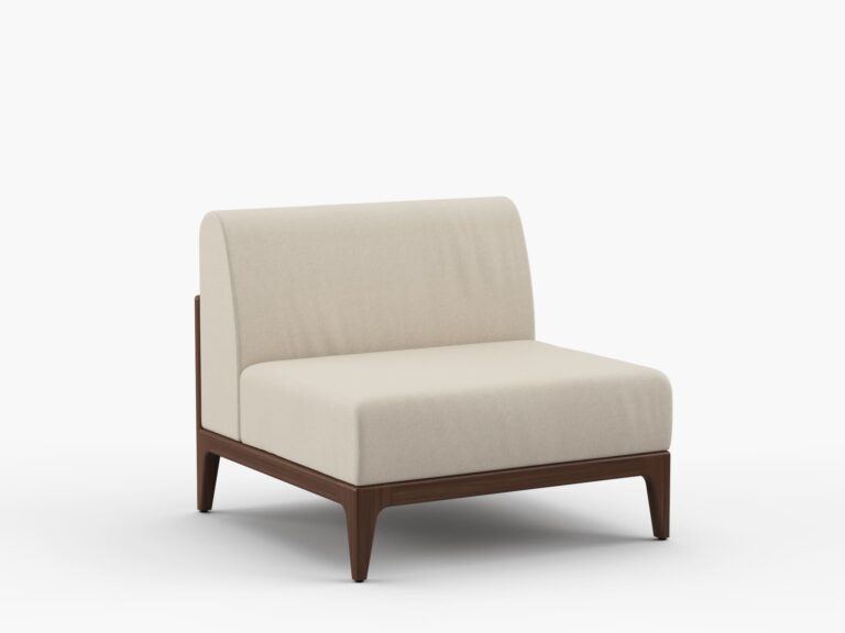 Este módulo puede utilizarse de forma independiente en áreas de conversación o integrarse fácilmente en configuraciones seccionales o lounges, permitiendo adaptar el espacio según el número de invitados o el estilo deseado. Su diseño modular brinda total flexibilidad para crear ambientes dinámicos y personalizados.