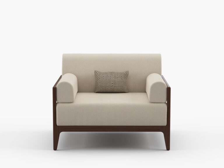Diseñada para ofrecer una experiencia de descanso superior, cuenta con dimensiones generosas, respaldo ergonómico y asiento amplio, brindando máximo confort tanto para relajarse como para socializar. Sus brazos con estructura de paneles elaborados con listones de madera maciza de Ipe aportan un detalle distintivo que eleva su estética arquitectónica.