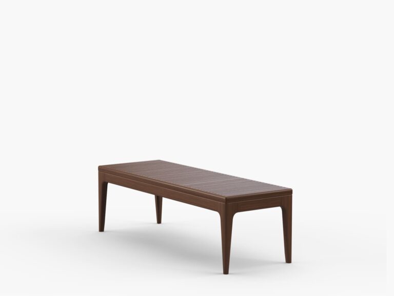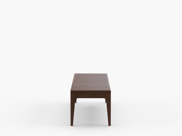 Ideal como punto central en configuraciones lounge, ofrece una amplia superficie perfecta para colocar bebidas, aperitivos o elementos decorativos, convirtiéndose en el escenario ideal para momentos de convivencia. Su diseño robusto se complementa con patas esculpidas elaboradas a partir de listones lineales de madera maciza de Ipe, aportando estabilidad y una presencia elegante.