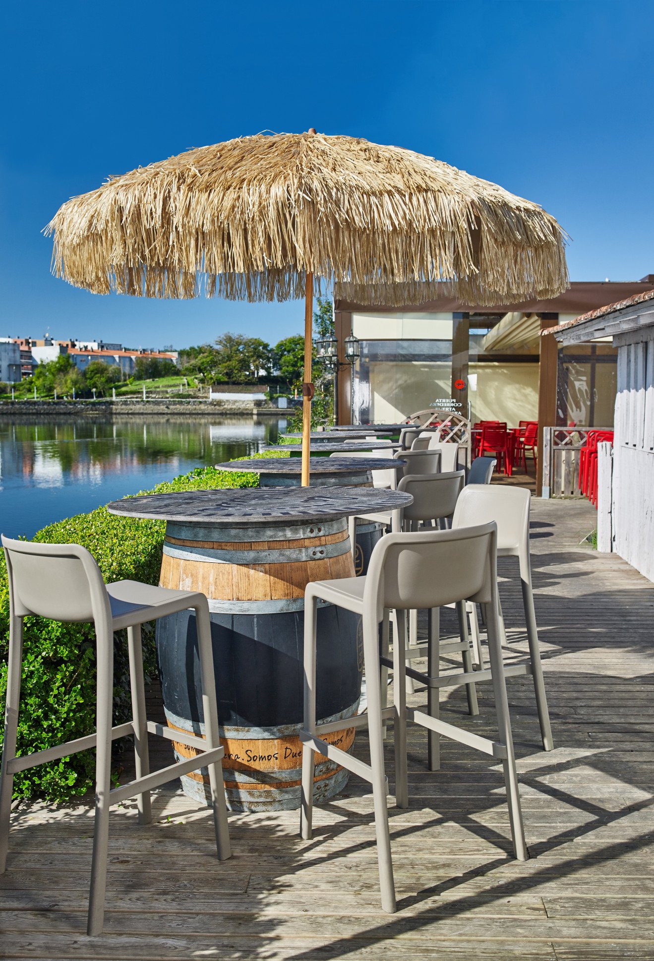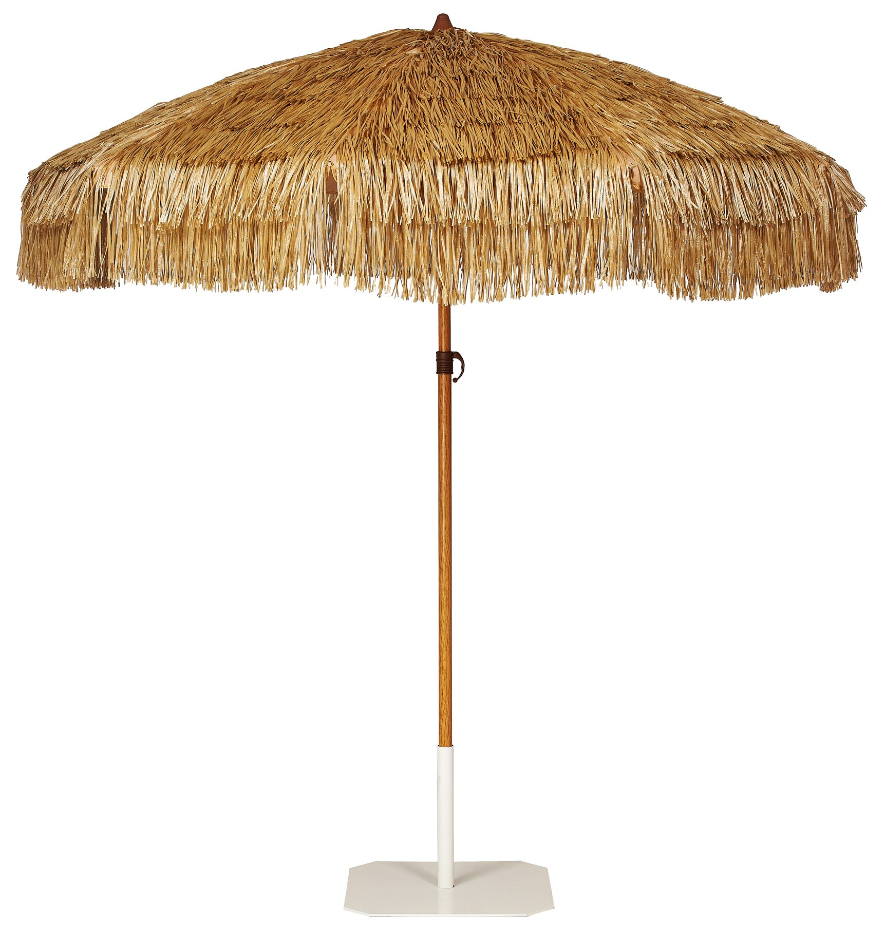 El tejido de rafia de poliéster aporta una estética tropical y acogedora, ideal para terrazas, jardines, hoteles y restaurantes. Incorpora protección UV UPF50+, que garantiza una barrera eficaz frente a los rayos solares. Su altura es regulable para adaptarse a diferentes necesidades de sombra.
