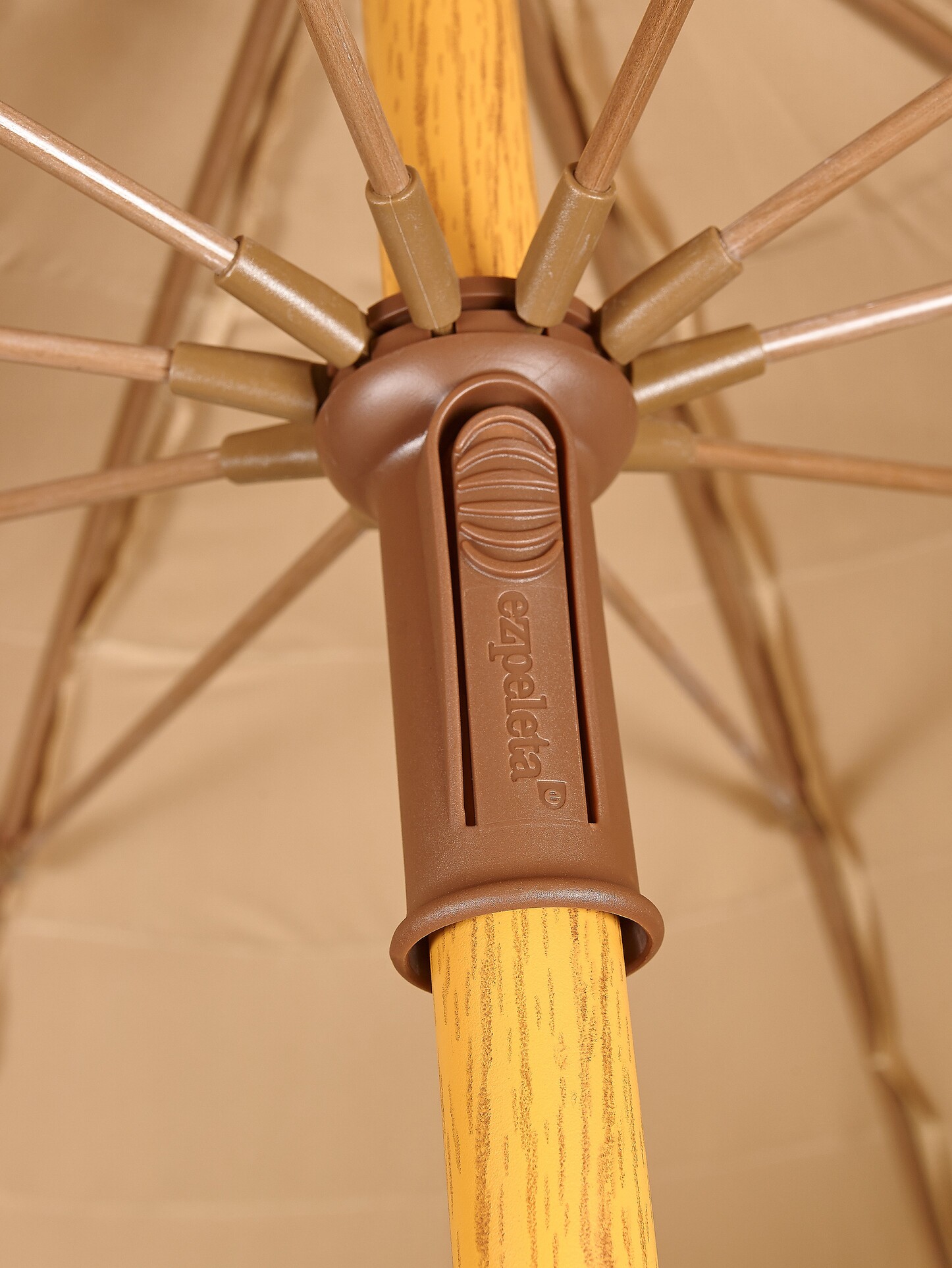Disfruta del verano con el elegante parasol Manila de Ezpeleta, diseñado para ofrecer estilo, resistencia y protección solar profesional. Su estructura está fabricada en acero con acabado imitación madera natural, y cuenta con diez varillas de fibra de vidrio de 6 mm, lo que le proporciona ligereza y durabilidad.
