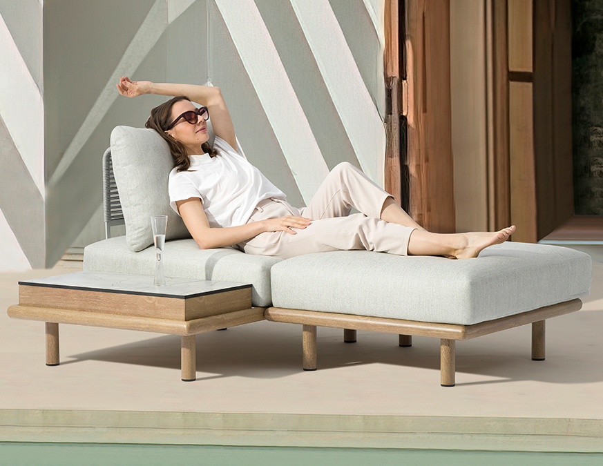 La estructura incorpora ALUWOOD®, un acabado exclusivo desarrollado por COUTURE Jardin y aplicado con precisión sobre aluminio de alta calidad. Disponible en versiones ALUOAK o ALUTEAK, este tratamiento reproduce con gran fidelidad la textura y calidez visual de la madera natural, pero con un rendimiento técnico superior.