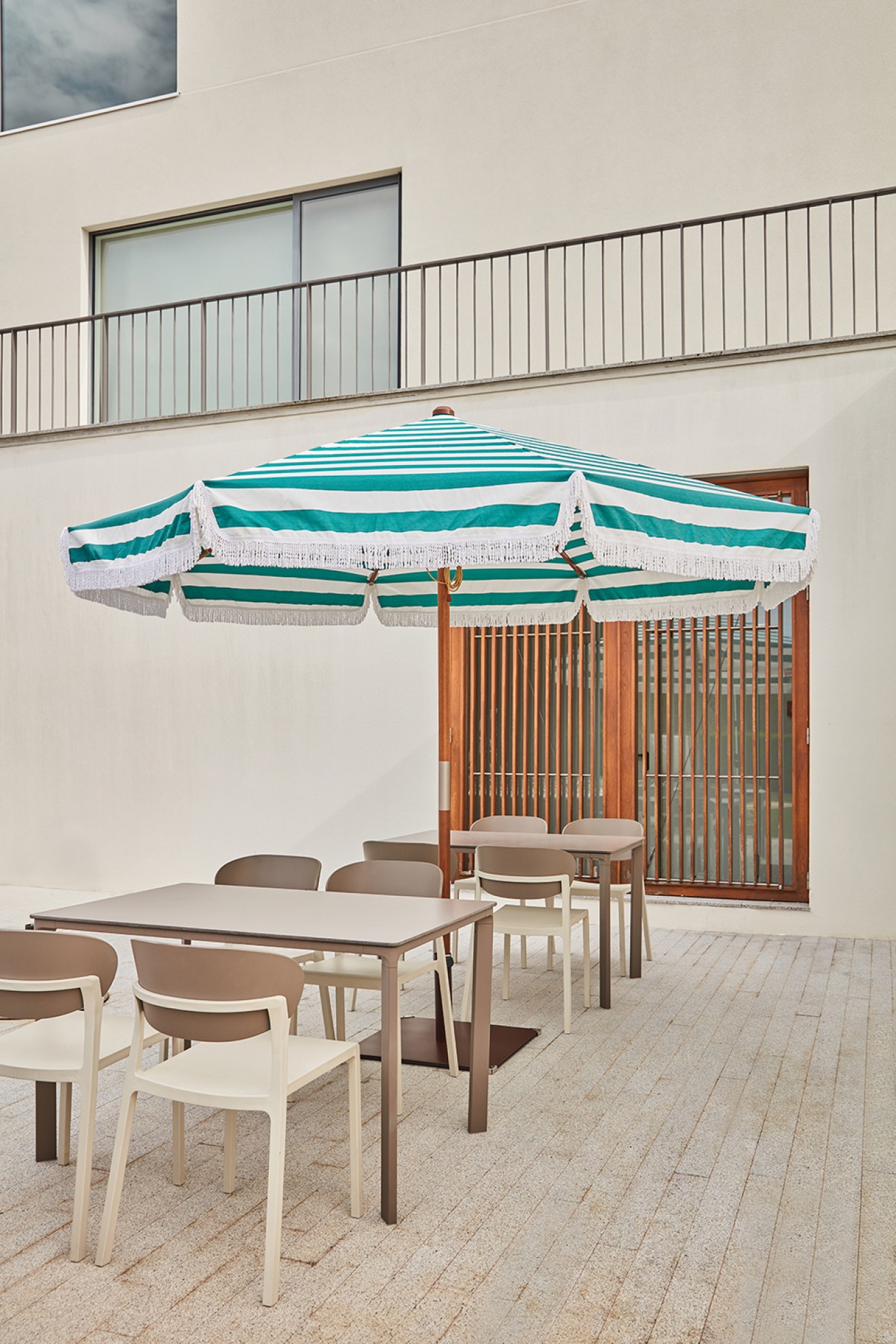 En su versión tapizada con tejido técnico antibacteriano, es ideal para interiores como oficinas, hoteles y espacios hospitality. En su versión sin tapizado, está pensada para uso exterior, gracias a su cuerpo fabricado en polipropileno reforzado con fibra de vidrio, inyectado por gas para lograr una estructura ligera, resistente y duradera.