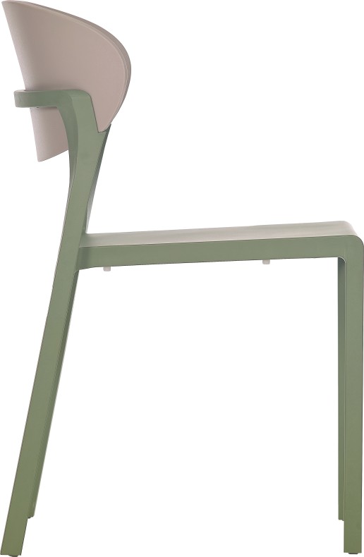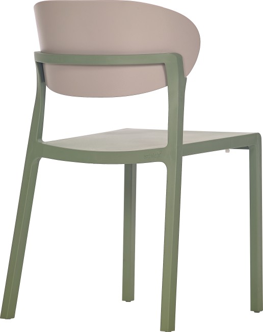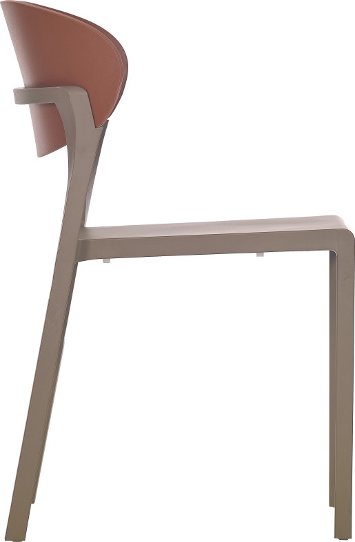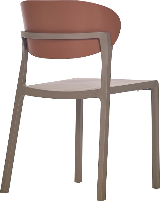 Silla apilable de líneas atemporales y geometría envolvente, diseñada para ofrecer máximo confort y versatilidad en interiores o exteriores. Está disponible en una paleta de colores inspirada en la naturaleza: Terracota/Taupe, Arena/Taupe, Verde Olivo y Blue Grey, adaptándose con estilo a cualquier entorno.