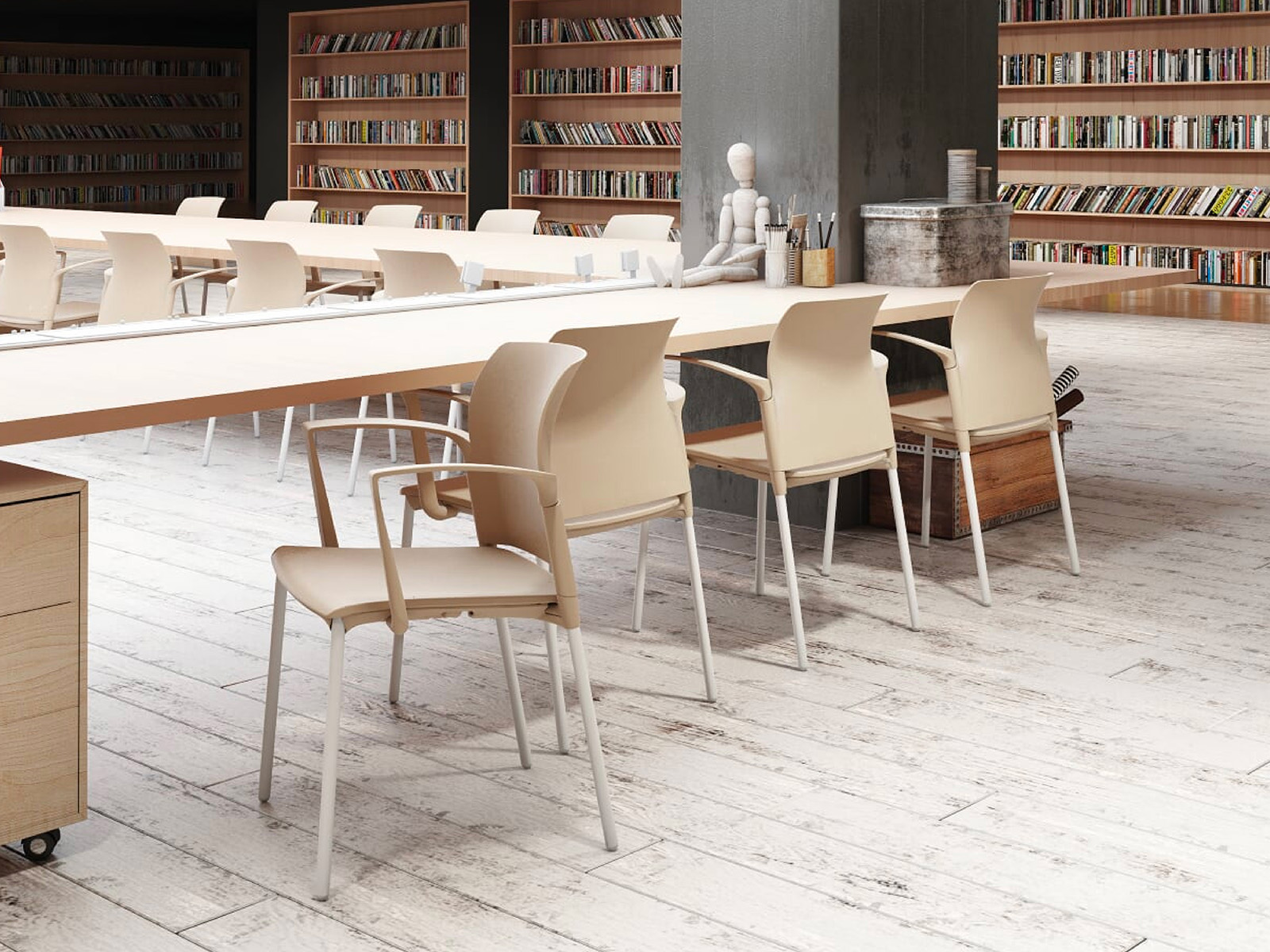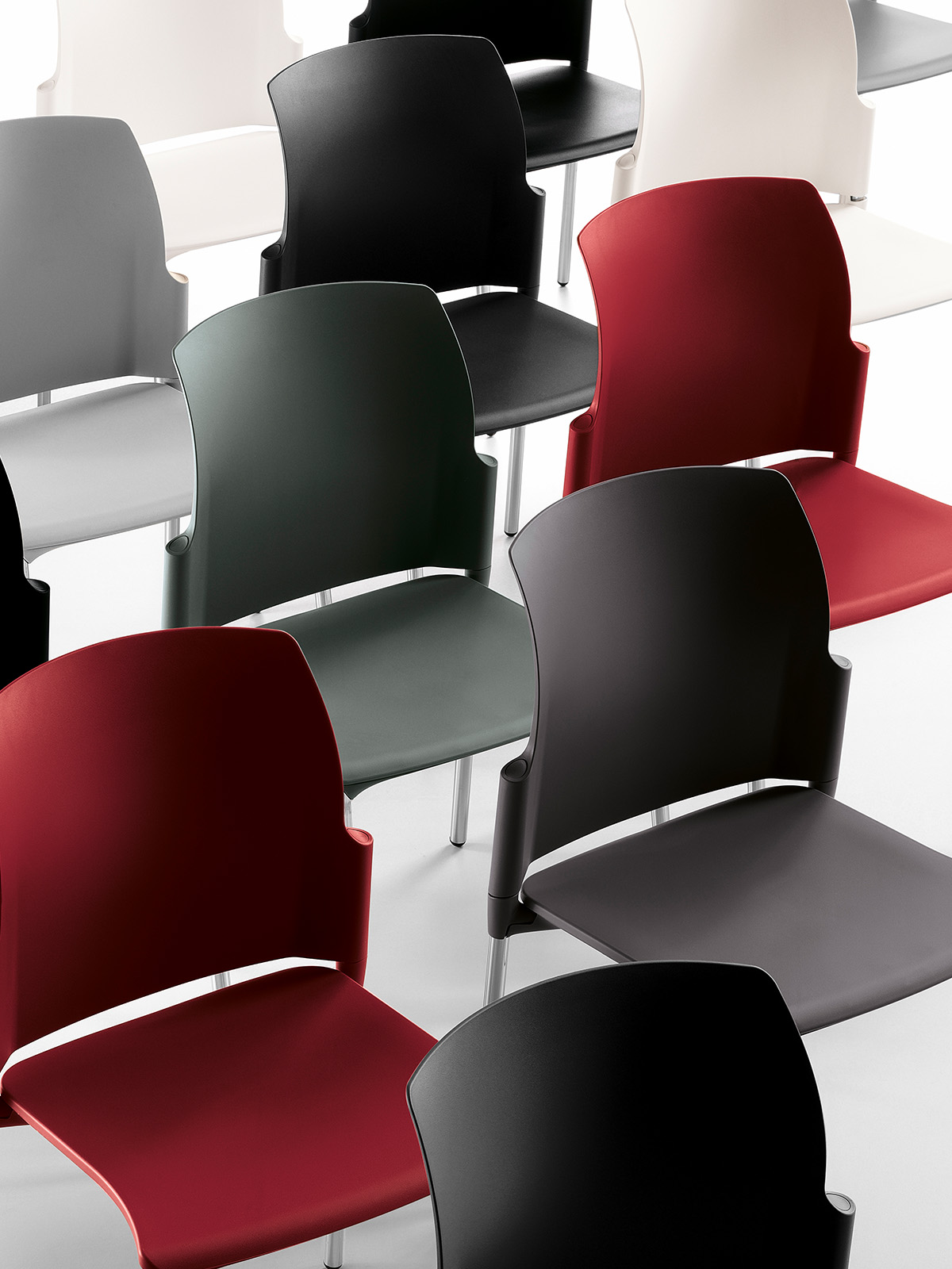 Silla vers til y funcional con asiento en polipropileno y base de acero tubular. Disponible con o sin brazos, ideal para espacios contempor neos.
