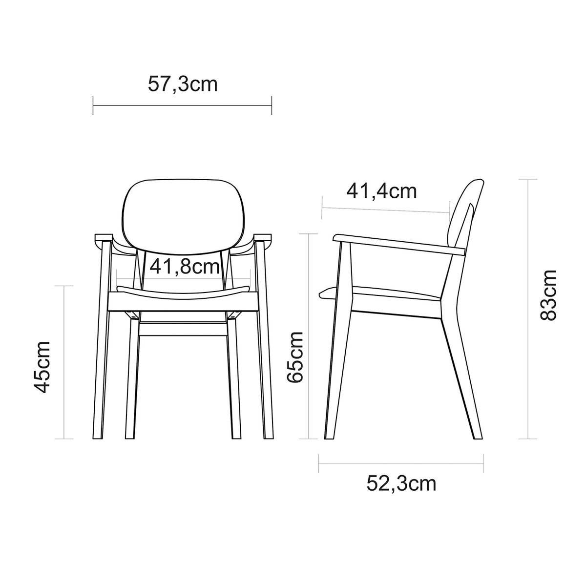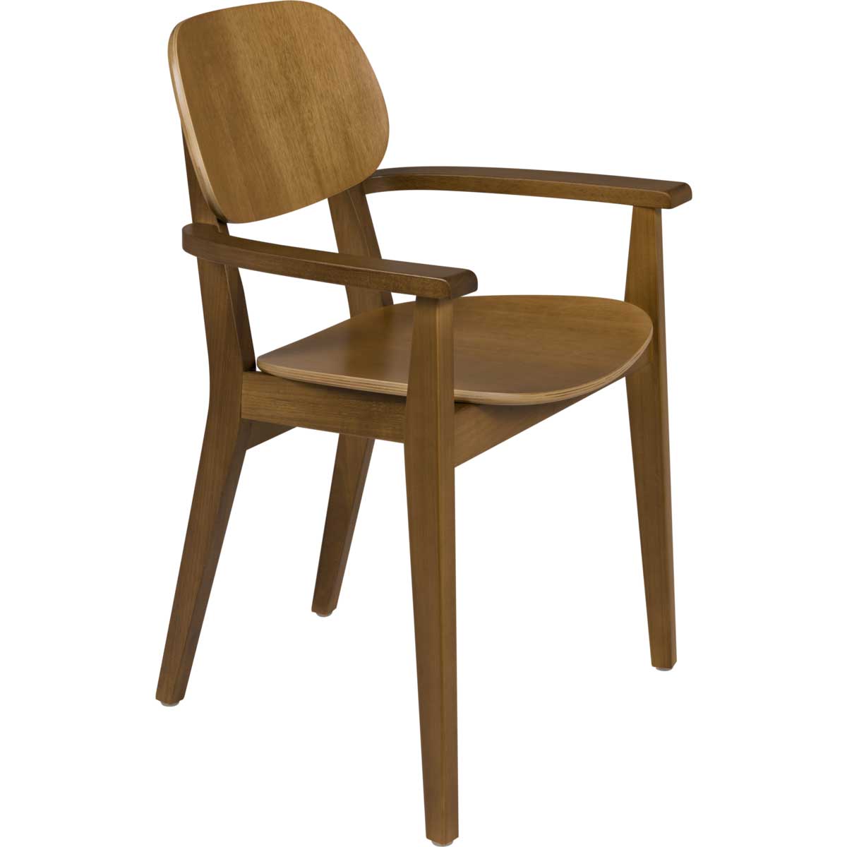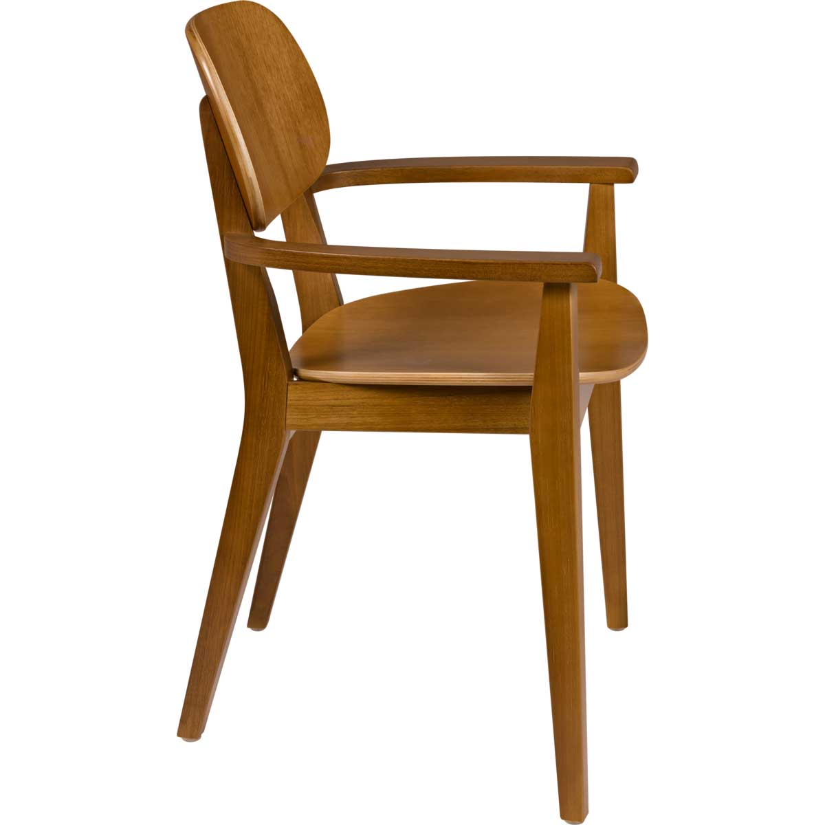 Silla con brazos London hecha en madera Tauarí en acabado con barniz de almendra teñida.