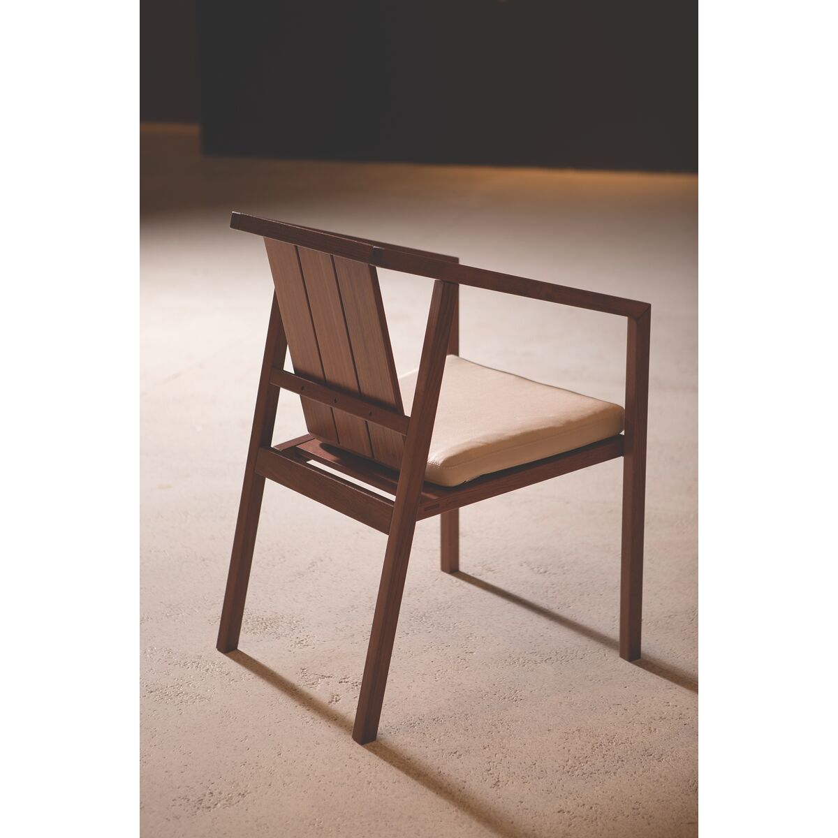 Silla de madera Jatobá FSC con respaldo y brazos. Diseño robusto, ergonómico y elegante, perfecta para comedores, oficinas y terrazas con estilo natural.
