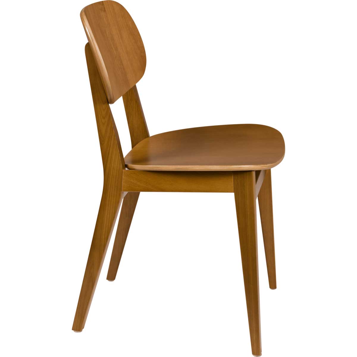Silla London sin brazos y hecha en madera Tauarí en acabado con barniz de almendra teñida.