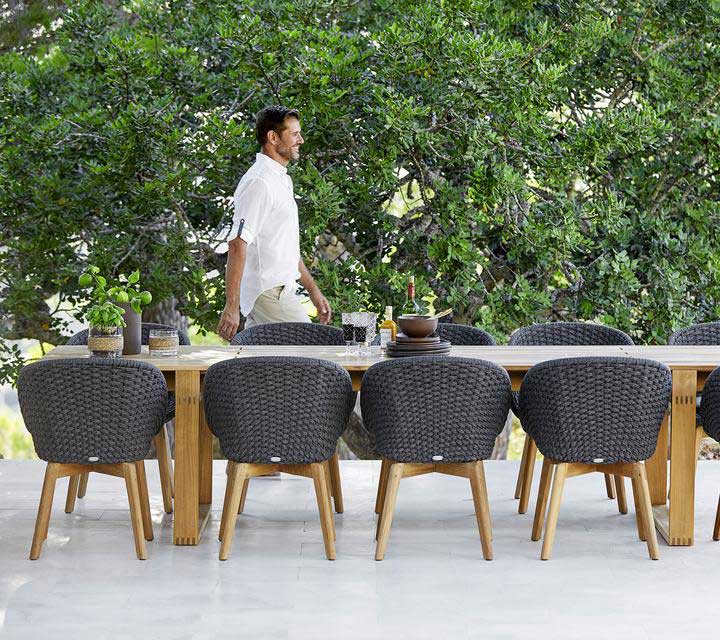 Peacock está disponible en dos materiales duraderos. Ya sea Cane-line Weave® o Cane-line Soft Rope, lo que hace que Peacock sea ideal para uso en exteriores.
