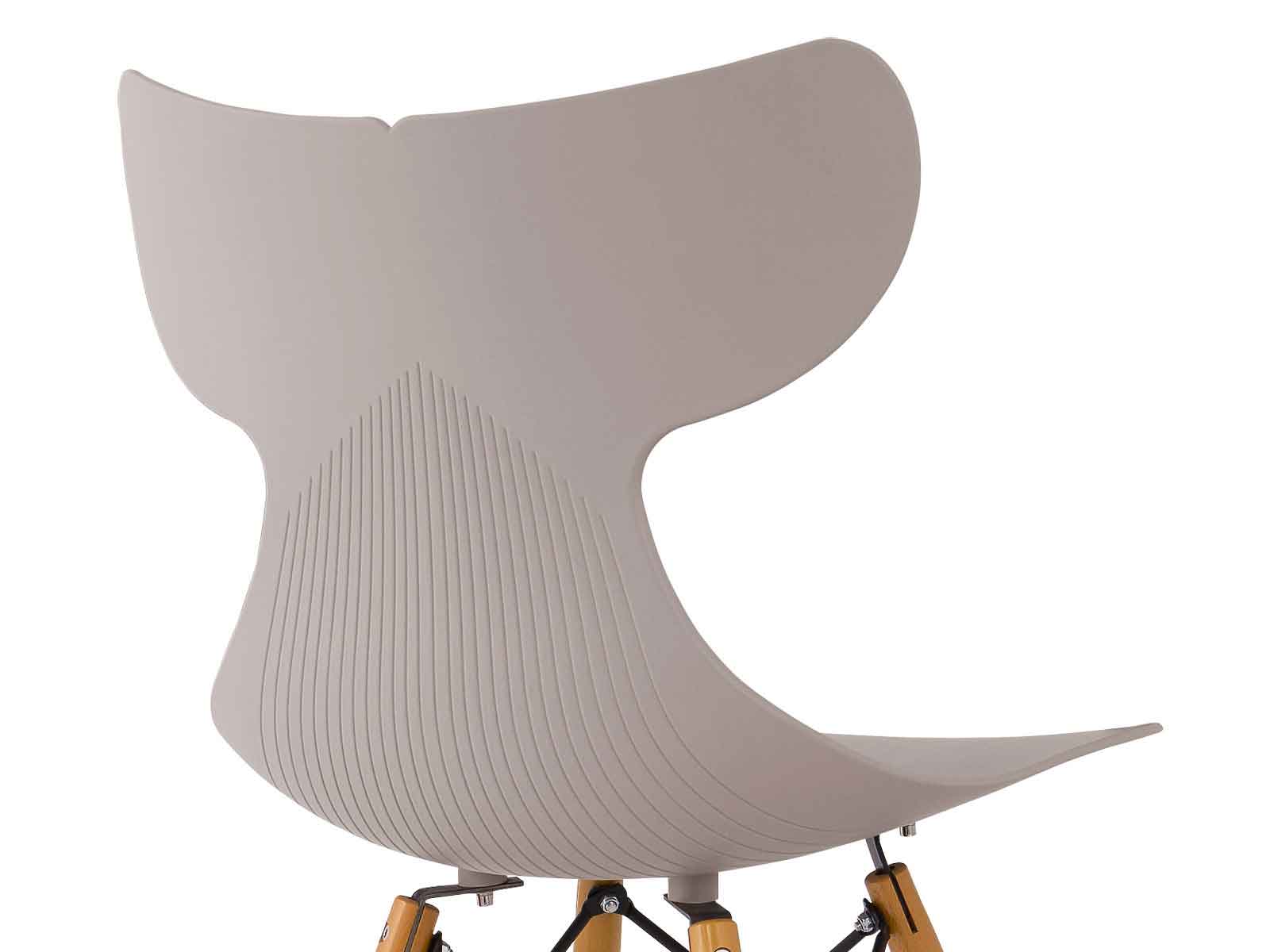 Como su nombre lo menciona es diseñada a imagen de la ballena, fusionándose armoniosamente con el medio ambiente. El asiento se adapta muy bien al sentarse. El diseño flexible del respaldo de la silla permite a las personas reclinarse en un soporte suave sin cansarse después de una larga sesión. Apoyándose en sus patas de metal que hacen combinanción con la base y respaldo de la silla.