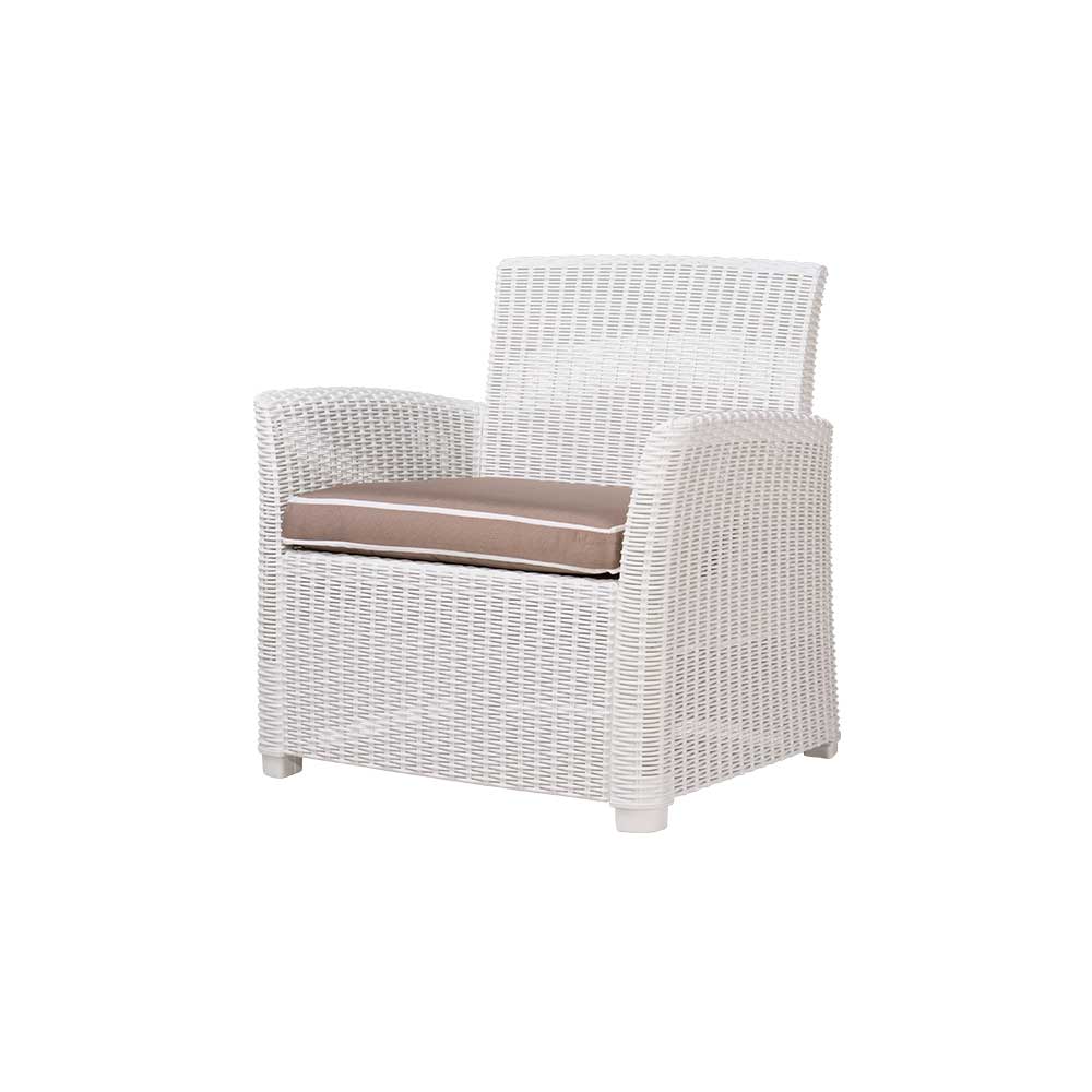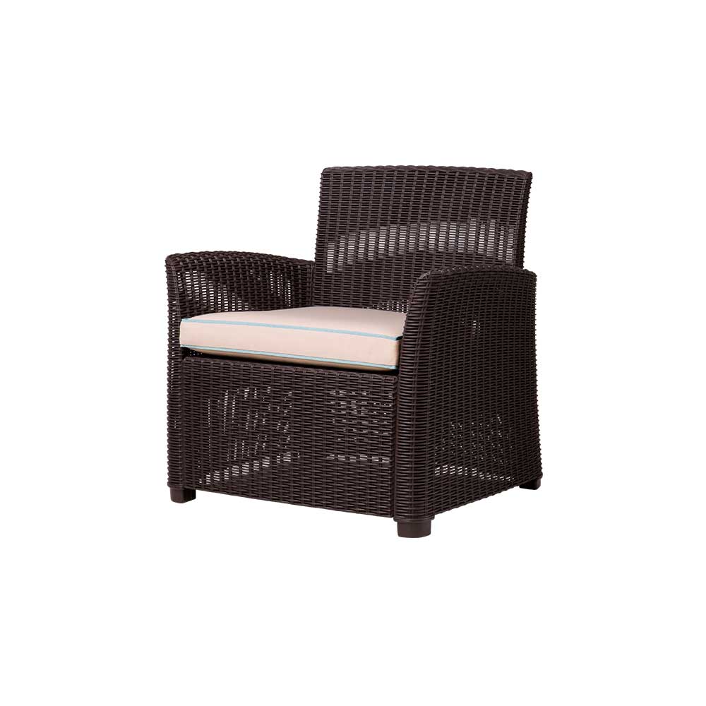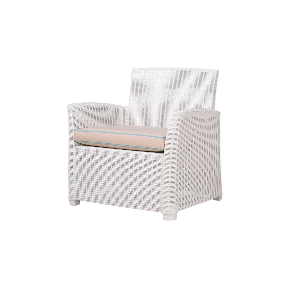 El sillón individual Gardenia combina comodidad, estilo y un diseño natural que embellece cualquier espacio exterior. Fabricado en polipropileno con acabado tipo mimbre, es resistente, ecológico y fácil de mantener. Perfecto para quienes buscan relajarse con estilo.
