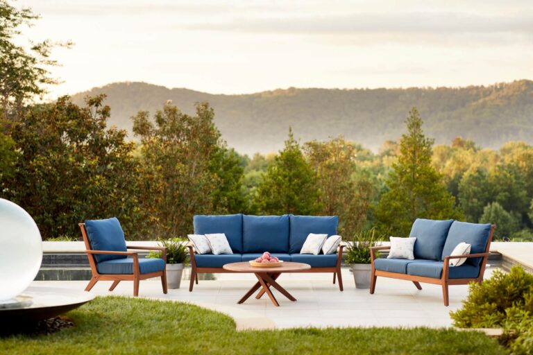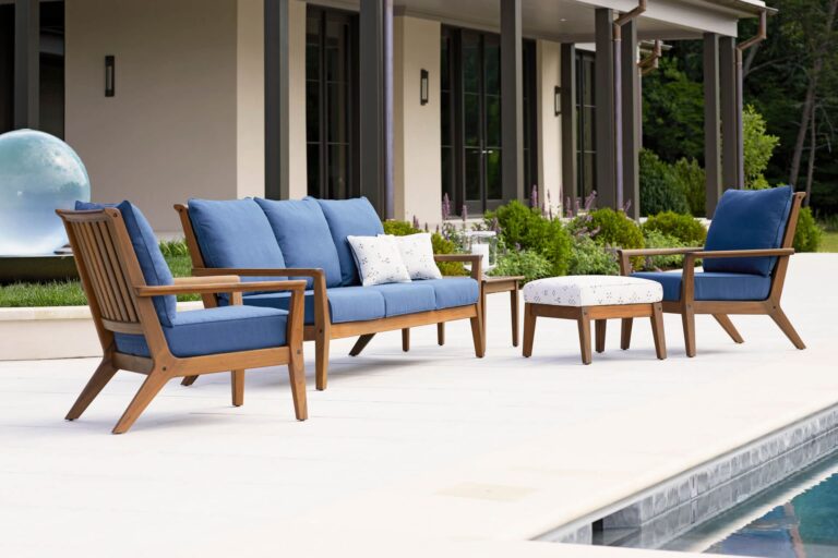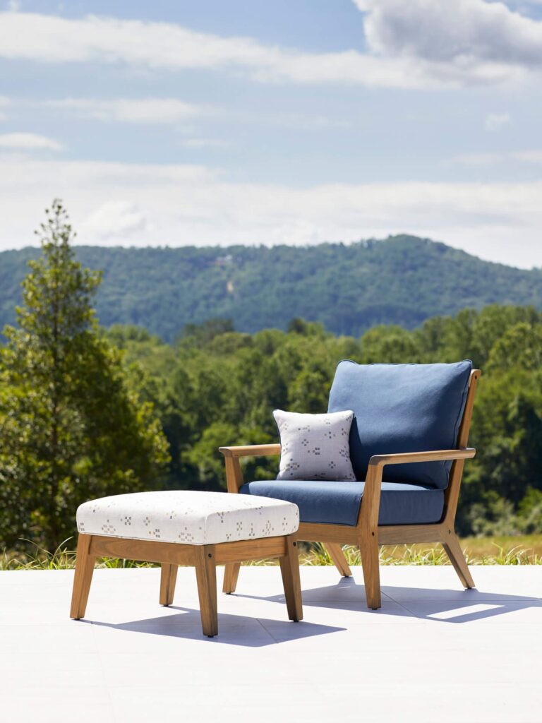 Para maximizar el confort, puede complementarse con cojines mullidos en telas Sunbrella®, resistentes a la decoloración y diseñadas para exteriores.
