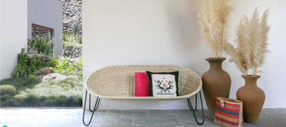 Inspirada en la forma de un nido, Todos Santos está tejida en fibra de palma natural o fibra sintética, aportando calidez y una vibra relajada al ambiente.
