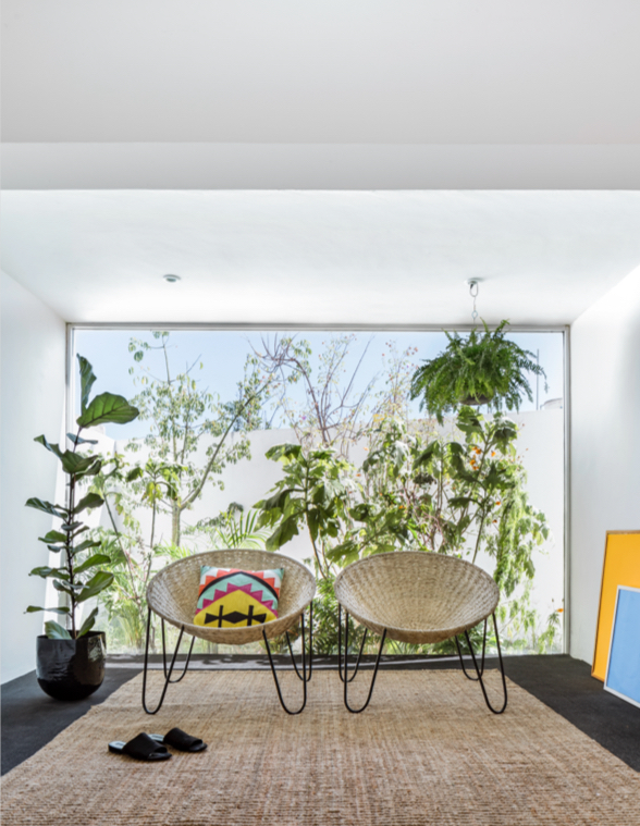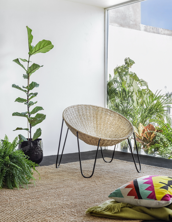 Inspirada en la forma de un nido, Todos Santos está tejida en fibra de palma natural o fibra sintética, aportando calidez y una vibra relajada al ambiente.